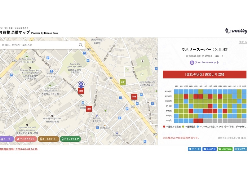 スーパーや薬局の3密を事前確認 Unerryが お買物混雑マップ 公開 日経クロステック Xtech