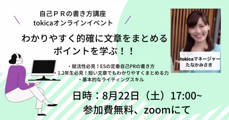 8月22日 土 17時 就活生必見 自己prの書き方講座 Tokicaオンラインイベント 学生マーケティング局 Tokica Note